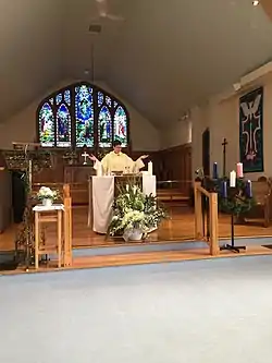 A new Arts and Crafts style church was built in 1916 and dedicated as Church of the Ascension in 1920.[1] The features include Parish Hall and the stained glass windows, some of which were salvaged from the original church. The Church participated in the 2012 Doors Open Ottawa.[2]
