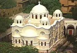 The Church of the Virgin Mary at Zeitoun (The Apparition Church) was built by Tawfik Khalil Ibrahim, under the supervision of the Italian architect Leomingelli.[1] The church was designed as a miniature of the Hagia Sophia church in Istanbul, Turkey. Allegedly based upon a vision Ibrahim had seen, it is said that the Virgin Mary told him that she would appear in her church at Zeitoun after forty years. The church was consecrated during a mass on June 29th, 1925. According to tradition, the site is one of the locations where the holy family stayed during their flight into Egypt.[2]