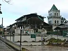 The earthquake also destroyed newer churches made of reinforced concrete. San Isidro Labrador church in Tubigon lost its façade and other structures in the church complex.[5] St Michael parish church of Clarin, also made of reinforced concrete, collapsed, leaving just the bell tower and the front of the church standing.[6] Inabanga church also collapsed leaving just the façade and back of the building.[7]