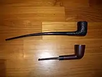 A churchwarden pipe is a tobacco pipe with a long stem. The history of the pipe style is traced to the late eighteenth or early nineteenth century.[1] Some churchwarden pipes can be as long as 16 inches (40 cm). In German the style is referred to as "Lesepfeife" or "reading pipe", presumably because the longer stem allowed an unimpeded view of one's book, and smoke does not form near the reader's eyes, allowing one to look down.