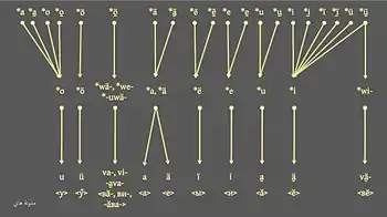 *ā > ya *ō > *wo > vu *ȫ, ǖ > *üwä > ăva |
