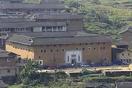A total of 36 tulous are conserved in Chuxi village.[4] The largest and also the oldest in the cluster is Jiqing Lou (simplified Chinese: 集庆楼; traditional Chinese: 集慶樓), built in 1419 during the reign of the Yongle Emperor of the Ming dynasty. It consists of two concentric rings, the outer ring building is four stories tall, with 53 rooms on each level. The outer ring contains 72 stairs split into 72 units interfacing each other. The second ring is a one-story building.[5]