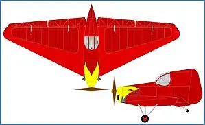 Chyeranovskii's smallest aircraft was the BICh-20 Pionyer, following broadly similar lines to its predecessors, the airframe was constructed of wood with a low aspect ratio tapered wing carrying suspended ailerons and flaps at the trailing edge. The engine and pilot were accommodated in the central nacelle with the cockpit canopy forming the leading edge of the broad chord fin and rudder. Flight tests were carried out, with ski undercarriage from early 1938, to investigate the turning performance of the tailless designs, particularly in flat horizontal flight without banking. Tests demonstrated turns up to 35 deg while the wings remained horizontal. The initial 18 hp Blackburne Tomtit was replaced with a 20 hp Aubier-Dunne in the latter half of 1938.