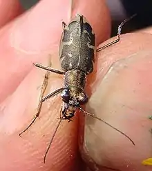The Puritan tiger beetle (Cicindela puritana) is a tiger beetle found in North America. Puritan tiger beetles are found in sandy beaches and rocky cliffs along rivers in Massachusetts, Maryland, and Connecticut.[1] Little is known about this species due to its small geographic range and quickly disappearing populations.