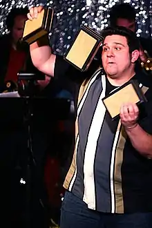 Cigar box juggling is the juggling of rectangular props that resemble cigar boxes. Wood block manipulation was thought to have started by Japanese prisoners who were given small wood blocks as head rests for sleeping. Cigar box manipulation was developed as a vaudeville act in the United States between the 1880s and 1920s, and was popularized by W. C. Fields.[1] Originally, performers would take actual boxes that cigars were stored in and nail them shut to create their juggling props. Today, cigar boxes for juggling are typically purpose-built, hollow wooden or plastic blocks with suede or foam rubber padding attached to the sides.[1]