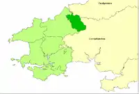 The Hundred of Cilgerran (often written "Kilgerran") was a hundred in the north of Pembrokeshire, Wales. It was formed by the Act of Union of 1536 from the commote of the pre-Norman cantref of Emlyn included by the Act in Pembrokeshire and is otherwise called in Welsh Emlyn Is Cuch (Emlyn below the River Cuch),[1]: 347 with the addition of the Cemais parish of Llantood. The area of the commote was about 106 km2: that of the hundred was 113 km2.