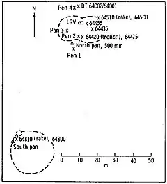 On April 21, 1972, the Apollo 16 Apollo Lunar Module Orion landed about 4 km north of Cinco, northeast of the prominent South Ray crater. The astronauts John Young and Charles Duke explored the area over the course of three EVAs using a Lunar Roving Vehicle, or rover. They drove up Stone Mountain to Station 4, about 80 m west of Cinco crater, on EVA 2. The primary goal of sampling on Stone Mountain was to attempt to sample the Descartes Formation, although it remains unclear if the Descartes was sampled.[3]