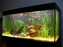 The magma fairy wrasse is an available fish for home and public aquariums. To successfully maintain its health, this wrasse requires a carnivorous diet rich in meaty food, such as brine and mysis shrimp, high quality frozen foods, pieces of fresh seafood, and flake and pellet foods. They need to be fed two of three times a day to stay healthy.[12] Furthermore, the Magma Fairy Wrasse adds a diversity of colour and activity in the aquarium. If adding this species of fish, it will likely be a male, since males are predominantly collected over juveniles and females (which are virtually identical in appearance, and therefore difficult for collectors to identify).