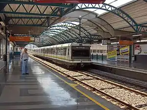 Cisneros is the second station on line B of the Medellín Metro, going from the central city to the west. It is named after the nearby Plaza Cisneros and its Cuban engineer, Francisco Javier Cisneros.[1] It is an elevated station in the district La Candelaria, in the city center just before the Medellín river and close to La Alpujarra Administrative Center (next to the Alpujarra station), the headquarters of Teleantioquia, the Geographic Institute Agustín Codazzi, and Autonomous University, and El Volador hill. The station was opened on 28 February 1996 as part of the inaugural section of line B, from San Javier to San Antonio.[2]