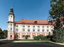 It is one of the most magnificent and beautiful Baroque buildings in Silesia, the place where the Book of Henryków was written – a landmark of Polish writing. Nowadays, the monastery of Henryków functions as the prior of the abbey of Szczyrzyc.[1] Currently, the monastery buildings house, among others, Annus Propedeuticus – a branch of the Metropolitan Theological Seminary in Wrocław (until 2018) – and the Blessed Edmund Bojanowski Catholic High School.
