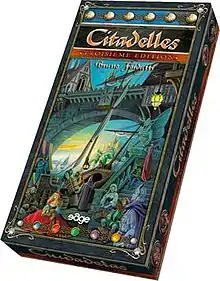 Citadels is a German-style card game, designed by Bruno Faidutti, originally published in French as Citadelles by MultiSim in 2000, illustrated by Julien Delval, Florence Magnin, Jean-Louis Mourier and Cyrille Daujean as graphic designer for the first edition. Sometime later, Citadels was published in German as Ohne Furcht und Adel, which means "Without Fear or Nobility".[1]