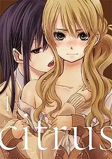 Citrus, written and illustrated by Saburouta, was serialized in Ichijinsha's bimonthly magazine Comic Yuri Hime from November 17, 2012 to August 18, 2018.[9][10][11] Ichijinsha published ten tankōbon volumes from July 18, 2013 to October 31, 2018.[12][13] To advertise the third volume of the manga, a PV covering the story up to that point was uploaded to Ichijinsha's YouTube channel on November 18, 2014.[7] A drama CD was released with the fourth manga volume on July 18, 2015.[8] The manga is licensed in North America by Seven Seas Entertainment, who published the series from December 16, 2014 to July 23, 2019.[14][15] It has also been licensed in Germany,[16] Thailand,[17] and Taiwan.[18]