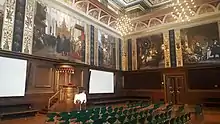 Christian Hansen's original hospital building consisted of two three-story main wings joined together by two connectors.[4] In 1954, the complex was expanded by city architect Frederik Christian Lund in a style similar to that of the original buildings. The Copenhagen Municipal Hospital closed on 1 May 1999. The buildings were then taken over by University of Copenhagen.[5]
