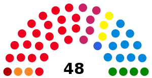 The City Council is elected for five-year terms. Its seats are assigned proportionally to each party and list, with a majority bonus being awarded to the winning coalition to guarantee governability. The last election was held on 3-4 October 2021.
