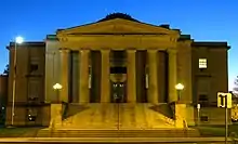 Plattsburgh City Hall is an historic government building located at City Hall Place in Plattsburgh, Clinton County, New York. It was designed by architect John Russell Pope and constructed in 1917. It is a three-story, steel frame, limestone clad building in the Classical Revival style. It features a projecting entrance portico with six Doric order columns and a low central dome.[2]: 6–7