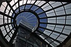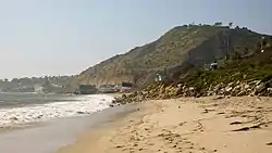 Some of the film was shot at Lake Tahoe's surrounding areas and Kern County.[27] The "falling" scene was partially shot at the Los Angeles Bank of America, while Cage was placed on a moving rig over a bluescreen.[26] Ryan's death scene was filmed on Old Mill Road in Crestline, California.[27] The library scenes were shot at San Francisco Public Library.[20] For angel scenes shot at Malibu Beach, though the characters are not physical beings, it was decided that the angels would have briefly visible footprints to avoid the perception that the sand was too hard to leave imprints. Thus, Nelson erased the footprints soon after they are first seen.[26]