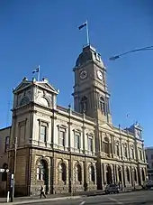 The City of Ballarat is a local government area in the west of the state of Victoria, Australia. It covers an area of 739 square kilometres (285 sq mi) and, in June 2018, had a population of 107,325.[1] It is primarily urban with the vast majority of its population living in the Greater Ballarat urban area, while other significant settlements within the LGA include Buninyong, Waubra, Learmonth and Addington. It was formed in 1994 from the amalgamation of the City of Ballarat, Shire of Ballarat, Borough of Sebastopol and parts of the Shire of Bungaree, Shire of Buninyong, Shire of Grenville and Shire of Ripon.[2]