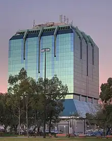 In 1989, Council commissioned a new 14-storey "Civic Tower" office building at 66-72 Rickard Road to accommodate additional council staff, state government agencies, and rented office space. With construction beginning in 1990, the tower was complete by 1991. The Civic Tower became the primary Council offices from 1997 to 1999 following the destruction of the Administration Building.[33]