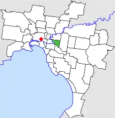 The council area covered the suburbs of Hawthorn, Hawthorn East and parts of Glen Iris, and was bounded by the Yarra River to the west, Barkers Road to the north, Gardiners Creek and CityLink (formerly South Eastern Freeway) to the south and Burke Road to the east.[7]