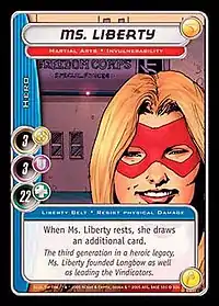 ![]() The "Ms. Liberty" card from the City of Heroes Collectible Card Game | |