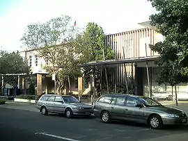 First proclaimed in July 1872 as the Municipal District of Prospect and Sherwood.[2] The first council, consisting of six aldermen at-large, was elected on 30 August 1872.[3] The council became the Municipality of Prospect and Sherwood from 1906 and on 11 January 1927 it was renamed the Municipality of Holroyd after Arthur Holroyd, the first mayor.[4] From 1 January 1991, city status was granted, becoming the Holroyd City Council. Originally located at the Council Chambers in Merrylands West from 1915, the administrative centre of Holroyd was located in the suburb of Merrylands from 1962.[5][6] The Holroyd Administration Centre was officially opened by the Premier of New South Wales, Bob Heffron, on 19 June 1962.[7]