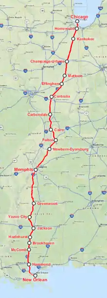 | Termini | Chicago, Illinois New Orleans, Louisiana | |||||||||||||||||||||||||||||||||||||||||||||||||||||||||||||||||||||||||||||||||||||||||||||||||||||||||||||||||||||||||||||||||||||||||||||||||||||||||||||||||||||||||||||||||||||||||||||||||||||||||||||||||||||||||||||||||||||||||||||||||||||||||||||||||||||||||||||||||||||||||||||||||||||||||||||||||||||||||||||||||||||||||||||||||||||||||||||||||||||||