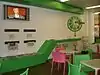 The design is not one that is found in a 'traditional' Library and features the use of vibrant colours, banks of music listening stations, Xbox game consoles, flat screen televisions displaying music and news channels and a see through staff work area.
