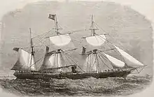 ![]() City of Ragusa at Queenstown, County Cork, 1870. The windmill was removed for the crossing. | |