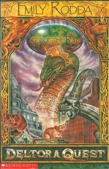 City of the Rats is the third novel in the eight-volume fantasy series Deltora Quest, written by Australian author Emily Rodda. The novel was first published by Scholastic in 2000, and later released in the United States in 2001.[2][3] The novel continues Lief, Barda, and Jasmines journey to find the seven missing gems of Deltora, braving dangers and guardians in each book.
