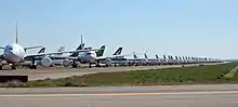 That same month, the first airplanes parking at the facilities due to that pandemic arrived for storage.[38][39] By August 2020 it was already hosting around 60 airplanes, from Vueling, Iberia, South African, Aer Lingus or Virgin Atlantic, and was planning to expand to host around 200 by the end of the year.[40] Even if the expansion did not take place, the airport hosted around 80 airplanes at the peak of the pandemic,[41] becoming one of the preferred locations in Europe for temporary storage. However, by July 2021 half of the aircraft were put back into operation by their respective airlines,[42] and the airport closed its doors temporarily as it had defaulted on its payments to several suppliers.[43]