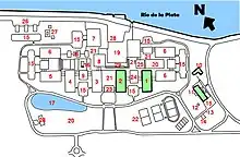 In 2007, a group of people founded a self-described "eco-village" named Velatropa in the abandoned groundwork of Pabellón V. The village's homes were built using recycled plastic and clay. Velatropa was relatively tolerated by UBA authorities and received benevolent media treatment, being featured in news reports and documentaries.[18][19] The settlement was evicted in November 2018 by the city government, which alleged it was temporarily displacing Velatropa's inhabitants due to security concerns regarding the upcoming G20 Summit, to be held some 7 kilometers away from the place. The settlement's inhabitants, however, were not allowed to return and Velatropa was eventually demolished.[20]