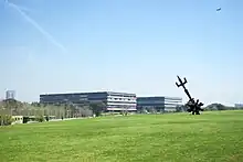 The two public parks proposed by the 1986 urbanization plan were finished in the 2000s, when they were re-envisioned as the Parque de la Memoria, which opened in 2005.[12] Recent developments in Ciudad Universitaria include a new building for the Instituto de Fisiología, Biología Molecular y Neurociencias (IFiByNe) and the Cero + Infinito building, designed by Rafael Viñoly and Sebastián Ceria, which serves as an annex for FCEN. Cero + Infinito was completed in 2019.[13] The Ciudad Universitaria railway station was opened in 2015, connecting the complex to the Belgrano Norte railway line.[14]