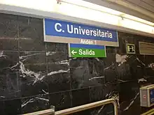 Ciudad Universitaria (University City) is a station on Line 6 of the Madrid Metro, located beneath Complutense avenue in the Ciudad Universitaria ward in the Moncloa-Aravaca district in fare Zone A.[1] It is named after the Ciudad Universitaria, which is home to the Complutense University of Madrid, the Technical University of Madrid, and the National University of Distance Education. The station's platforms feature tilework representing the bear and the strawberry tree, which is a symbol of Madrid. The station is located next to the Ciudad Universitaria underground train storage depot, where most of Line 6's 5000 series trains are stored.