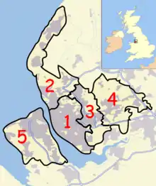 - Office for National Statistics : Census 2001 : Table KS01 : Usual Resident Population Archived 2015-04-22 at the Wayback Machine Abercromby; Aigburth; Allerton; Anfield; Arundel; Breckfield; Broadgreen; Childwall; Church; Clubmoor; County; Croxteth; Dingle; Dovecot; Everton; Fazakerley; Gillmoss; Granby; Grassendale; Kensington; Melrose; Netherley; Old Swan; Picton; Pirrie; Smithdown; Speke; St Mary's; Tuebrook; Valley; Vauxhall; Warbreck; and Woolton wards. Retrieved 2009-08-26