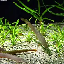 Cladistia is a clade of bony fishes whose only living members are the bichirs.[1] Their major synapomorphies are a heterocercal tail in which the dorsal fin has independent rays, and a posteriorly elongated parasphenoid.