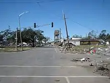 According to residents of the area, the Claiborne Expressway is generally acknowledged as the city's most hated piece of infrastructure and is considered the primary cause of the decline of the once thriving, African-American business district.[3][4] The famous oak trees were removed from the avenue, nearly 500 homes in the area were destroyed, families were displaced, and the businesses closed.[7][2] Over fifty years later, the only oak trees that line Claiborne Avenue are the ones painted on the concrete columns that support the interstate. Local artists have painted imagery on the columns that tell a story of the Tremé neighborhood's former history.[2] In the wake of rebirth and reconstruction following Hurricane Katrina in 2005, many groups and leaders have made proposals to alter and/or remove the interstate in hopes of resurrecting the once booming strip. New programs attempt to restart economic growth, restore the area's history and culture, and create a future for young residents.[1][2][3][4]