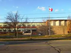 The Warden Woods ravine is the landmark of the neighbourhood, offering some downtown nature following Massey Creek east of Pharmacy Avenue to St. Clair Avenue.[1] Warden Hilltop Community Centre holds the distinction of being the first public building in Toronto to be LEED (Leadership in Energy and Environmental Design) Silver certified. It features a geothermal heating and cooling system, green roof and solar power. The centre includes a double gym, weight room, teaching kitchen and preschool area.[2] The Warden Hilltop Community Centre is named after Hilltop Boarding and Riding Stables, also known as the Three Gaits Stables that was previously on the site.[3]