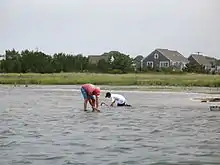 Two people digging for clams on Cape Cod, Massachusetts in 2008