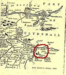 Alan Cathcart the fourth Lord Cathcart was a Protestant and a promoter of the Scottish Reformation.[1] He and his men fought for the Regent Moray at the Battle of Langside in 1568 against the army of Mary, Queen of Scots.[1] The ancient Cathcart Castle has a view point and is near the battlefield, from which the queen is said to have awaited the outcome of the battle.[1]