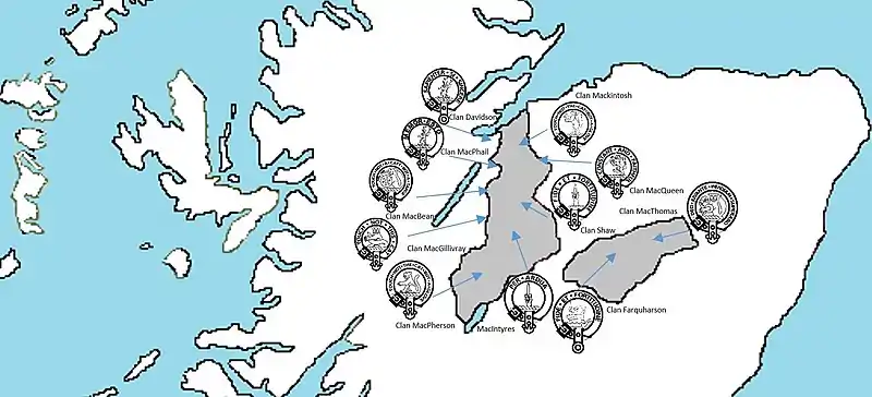 Prior to the 14th century, the Clan Chattan was a conventional Scottish clan.[3] However it evolved into an alliance or confederation of clans which was made up of