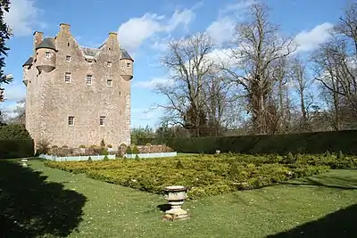 The chiefly line of the Clan Jardine appears to have been established by the fourteenth century at Applegirth on the River Annan in Dumfriesshire.[2] Their first stronghold was Spedlings Tower which was abandoned in the late seventeenth century.[2] From there the family moved across the river to Jardine Hall.[2] This was allegedly to escape the ghost of a miller who had been left to starve to death in the tower's dungeon.[2]