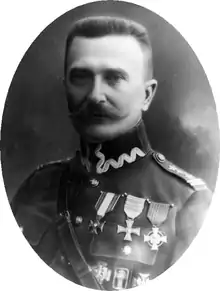 According to one legend,[14][15] the coat of arms was given in 1058 to a brave feudal knight, (Colonel) Ostoja, by Bolesław II the Generous. However, there may be another, older origin: Ostoja family members often used the name of Stibor (Scibor, Czcibor), on the basis of a family origin from Czcibor, victorious in the Battle of Cedynia brother of Mieszko I of Poland[16] – .
