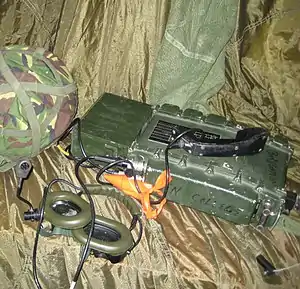 A vehicle-borne high-frequency (HF) transmitter-receiver used for inter-company communications outside of the normal working range of the VHF forward area nets; it can also be used dismounted from a vehicle as a ground station with an external power supply or batteries and antenna system. It was also used for rear link communications up to brigade level and administrative radio nets.