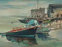 Peck participated in several exhibitions in the 1950s, beginning with the American Watercolor Society. From 1956 to 1957, Peck was part of the Metropolitan Museum of Art's European traveling exhibition; In 1958, Peck's work appeared at the Washington County Museum of Art, in a solo exhibition at Gettysburg College, at the York Art Center, and in New Canaan, Connecticut.[14] The Brandywine River Museum and the Delaware Art Museum host her paintings.[34] Since 2000, a few landscape and portrait oil paintings sales have been recorded at various auction houses.[35]
