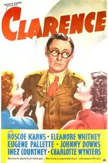 Clarence is a 1937 American comedy film directed by George Archainbaud and written by Grant Garett and Seena Owen. The film stars Roscoe Karns, Eleanore Whitney, Eugene Pallette, Johnny Downs, Inez Courtney and Charlotte Wynters. It is based on the play Clarence by Booth Tarkington. The film was released on February 12, 1937, by Paramount Pictures.[1][2][3]