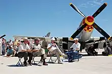 ![]() Clarence Emil "Bud" Anderson sitting on the wing of his P-51D Mustang "Old Crow" | |