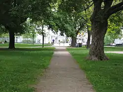 Clarence Square is a small park in downtown Toronto, Ontario, Canada, where Wellington Street West meets Spadina Avenue. It is a relatively quiet and shady park, with many large trees and a spacious grassy terrain. There are several benches and picnic tables scattered throughout and a drinking fountain in the centre.