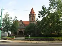 The Clark County Public Library traces its beginnings to the Springfield Lyceum in 1841 in Springfield, Ohio.[1] Various short-lived library associations followed and the library found a more permanent home on the second floor of Black's Opera House. The library housed 3,300 volumes when it opened to the public at this location in 1872. As patronage and the collection expanded, the need for yet another move set in and the library relocated in 1877 to the second floor of the Union Hall Building, which was situated on what is today Fountain Avenue.
