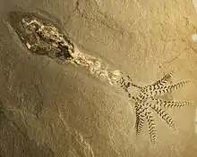 | Fossil of Clarkeiteuthis conocauda preying on Leptolepis | |
