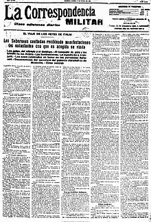 During the dictatorship Abánades co-operated with a vast array of dailies, be it national ones like El Día and La Nación[32] or local ones, like the Gipuzkoan La Constancia[33] or the Toledan El Castellano,[34] contributing also to weeklies like La Ilustración Española y Americana or Le Touriste and unsuccessfully renewing attempts to manage own periodicals.[35] During the Republic he contributed initially to La Correspondencia Militar, in 1932 emerging as its top comentator,[36] though starting 1933 he switched mostly to El Siglo Futuro, formally entering its editorial board.[37] He kept publishing also in other Catholic papers, be it local dailies like Navarrese Diario de Navarra and even Canarian Gaceta de Tenerife[38] or weeklies like La Hormiga de oro.[39] He is not known to have published in two leading national newspapers, the monarchist ABC and the Catholic El Debate.